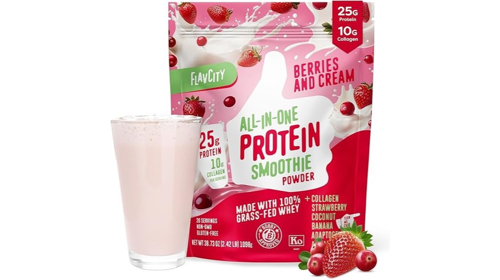 - FlavCity Protein Powder Smoothie offers 25g protein and 10g collagen per serving, supporting muscle recovery and weight loss effectively.
